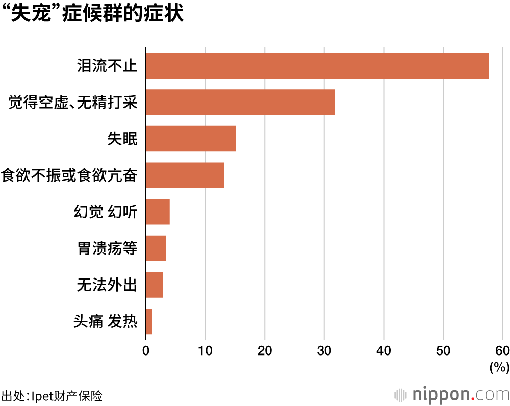 Ipet财产保险公司(东京都江东区)针对1000名有过家养宠物(猫狗)死亡经历,目前没有养宠物的人士实施的调查显示,62.3%的受访者表示自己或家人患上了“失宠(pet-loss)”症候群。