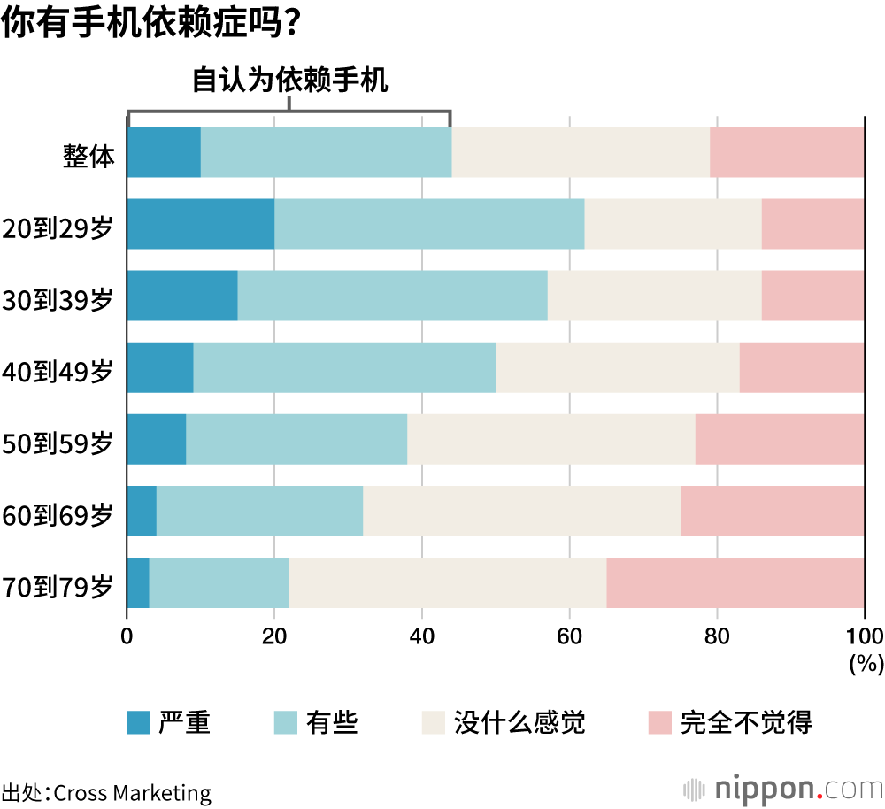 44%的受访者自我感觉患有“手机依赖症”