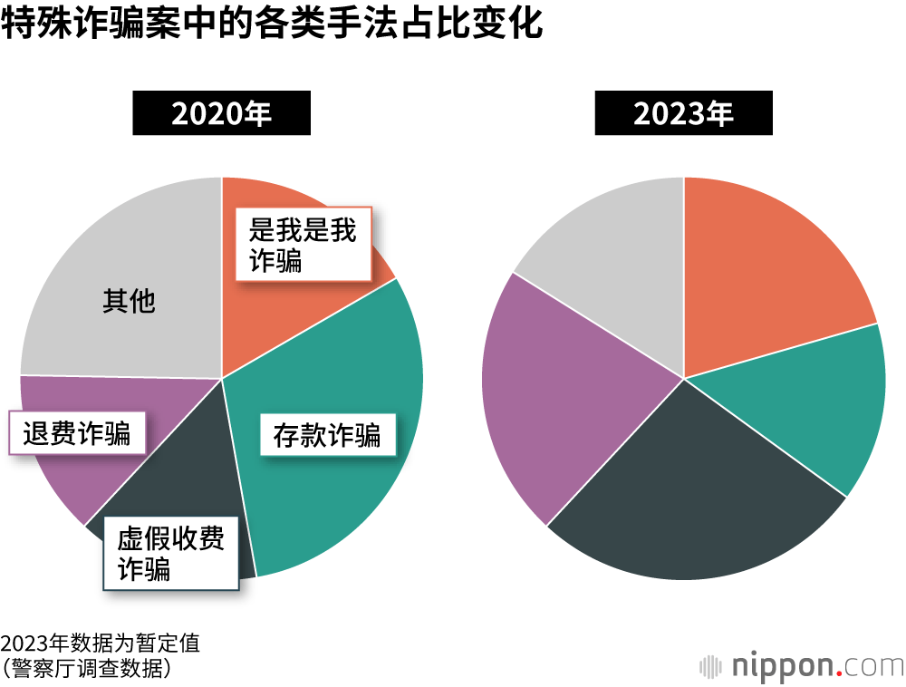所谓特殊诈骗,是通过给受害人打电话等方式,在不见面的情况下取得对方信任,让其给指定存款账户汇款,骗取现金等财物的犯罪行为的总称。警察厅表示,包括黑帮和准黑帮在内的犯罪团伙,通过分工、匿名等方式在有组织地实施此类犯罪。