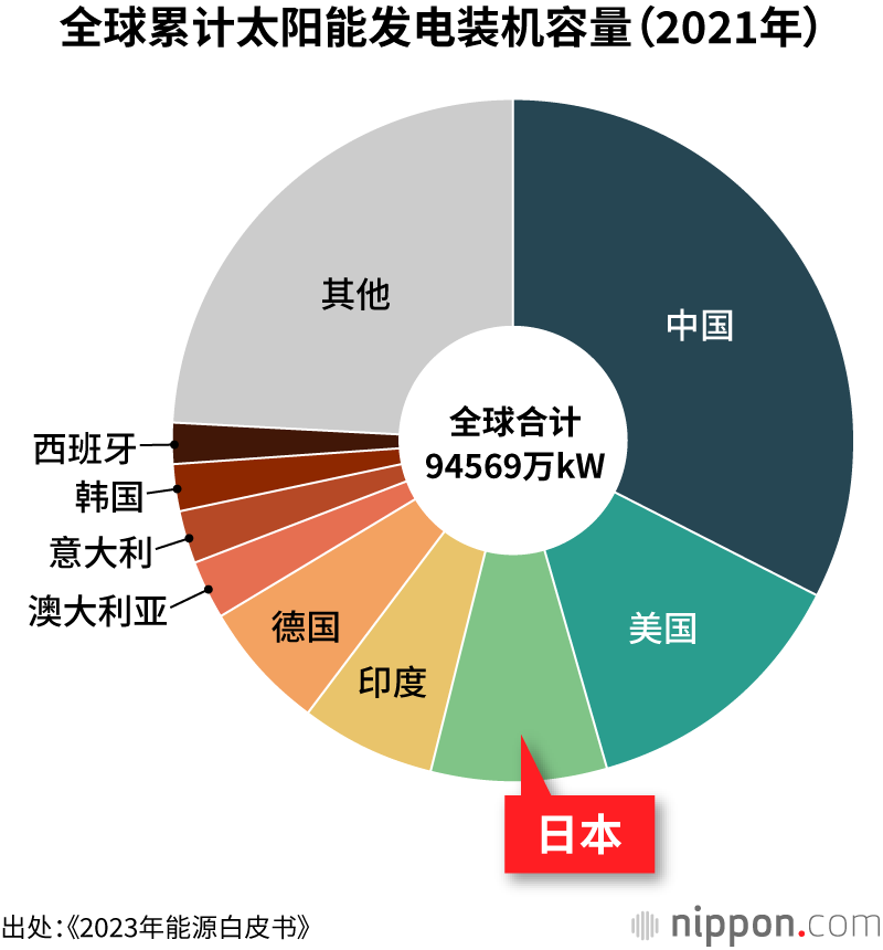 在燃料价格和电价持续飙升的背景下,无需依赖进口的国产能源——太阳能发电的存在感与日俱增。2021年日本国内太阳能发电并网容量较推行固定价格收购制度(FIT制度)以前的2011年增长了10倍以上。目前日本太阳能发电并网容量规模位居世界第三,仅次于中美两国。