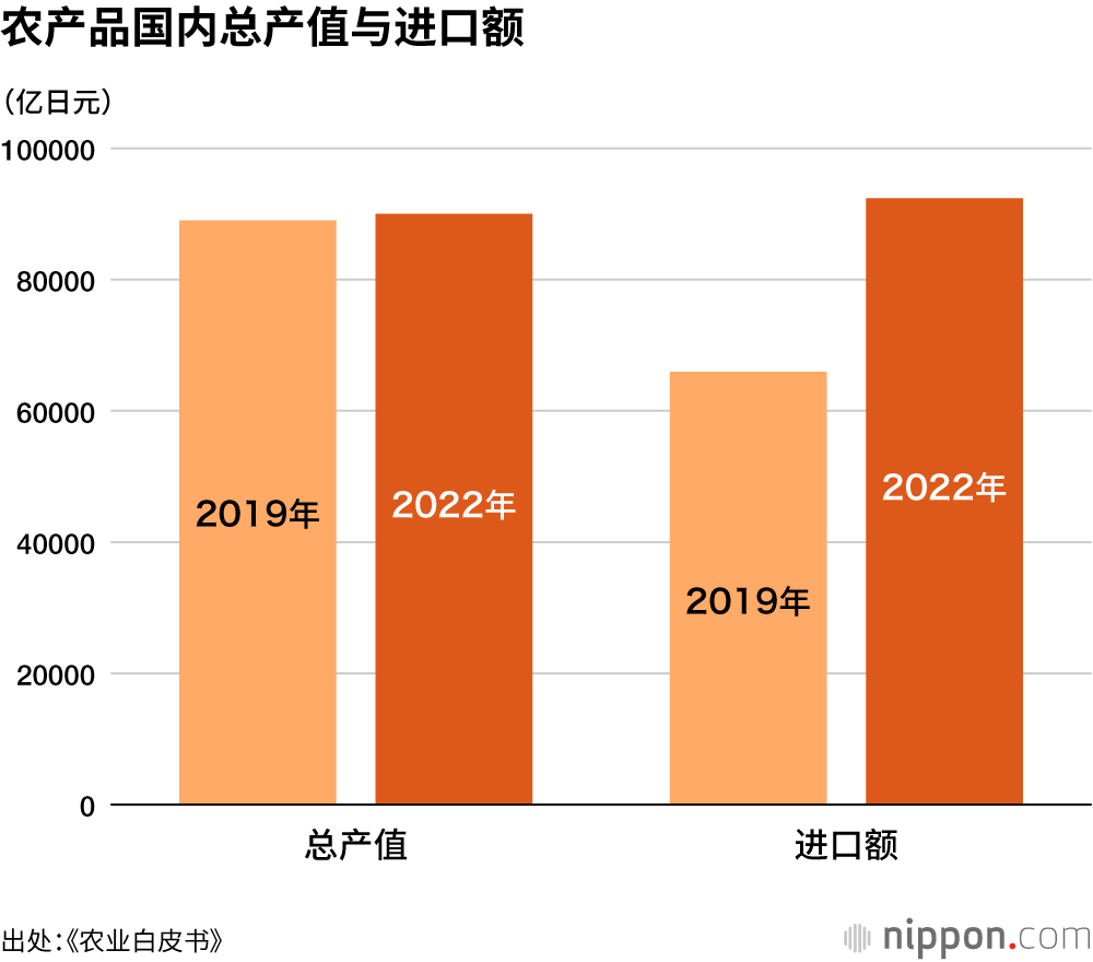 另一方面,在日元持续贬值的背景下,近年来农产品进口额出现激增。2023年实际进口额为90536亿日元,同比减少2.0%,但超过了农产品的国内总产值。相较2020年的进口额62129亿日元,短短3年间增长了40%以上。
