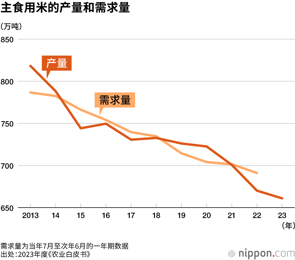 2023年主食用米产量为661万吨,同比减少1.4%。2022年的需求量为691.1万吨,10年间减少了10%以上。因此,农户近年来一直在加大改种米粉用米和饲料用米的力度。