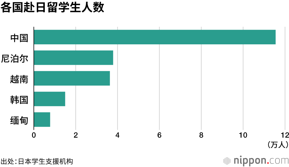 从留学生来源国来看,中国以115493人居首,占总人数的41.4%。其次是尼泊尔(37878人,13.6%)、越南(36339人,13%)、韩国(14946人,5.4%)、缅甸(7773人,2.8%)。来自尼泊尔、缅甸、孟加拉、美国的留学生人数超过了疫情前(2019年)。从来源地区看,亚洲以254224人居首,占比达91%。