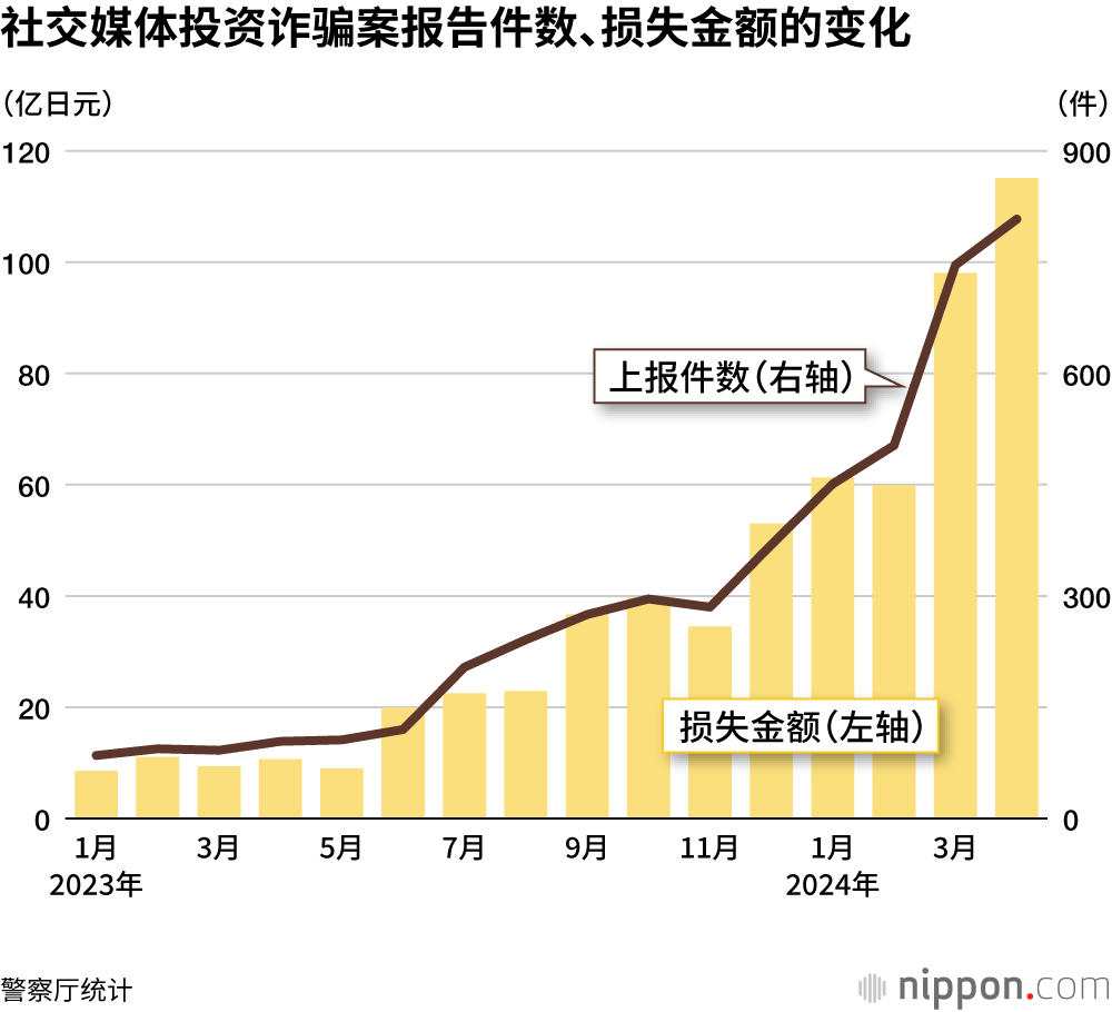 社交媒体投资诈骗,仅2024年4月就损失超过100亿日元
