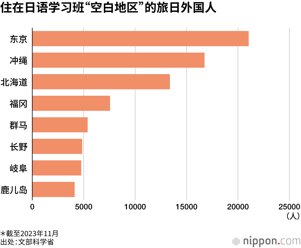 目前有141309名旅日外国人居住在日语学习班空白地区。从都道府县来看,东京最多,共21039人,较上一年的4509人增加了3.7倍。其次是冲绳、北海道等,反映出某些自治体的日语学习班开设速度赶不上外国人数量的增长步伐。