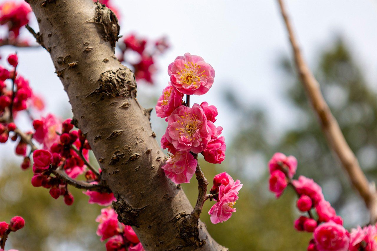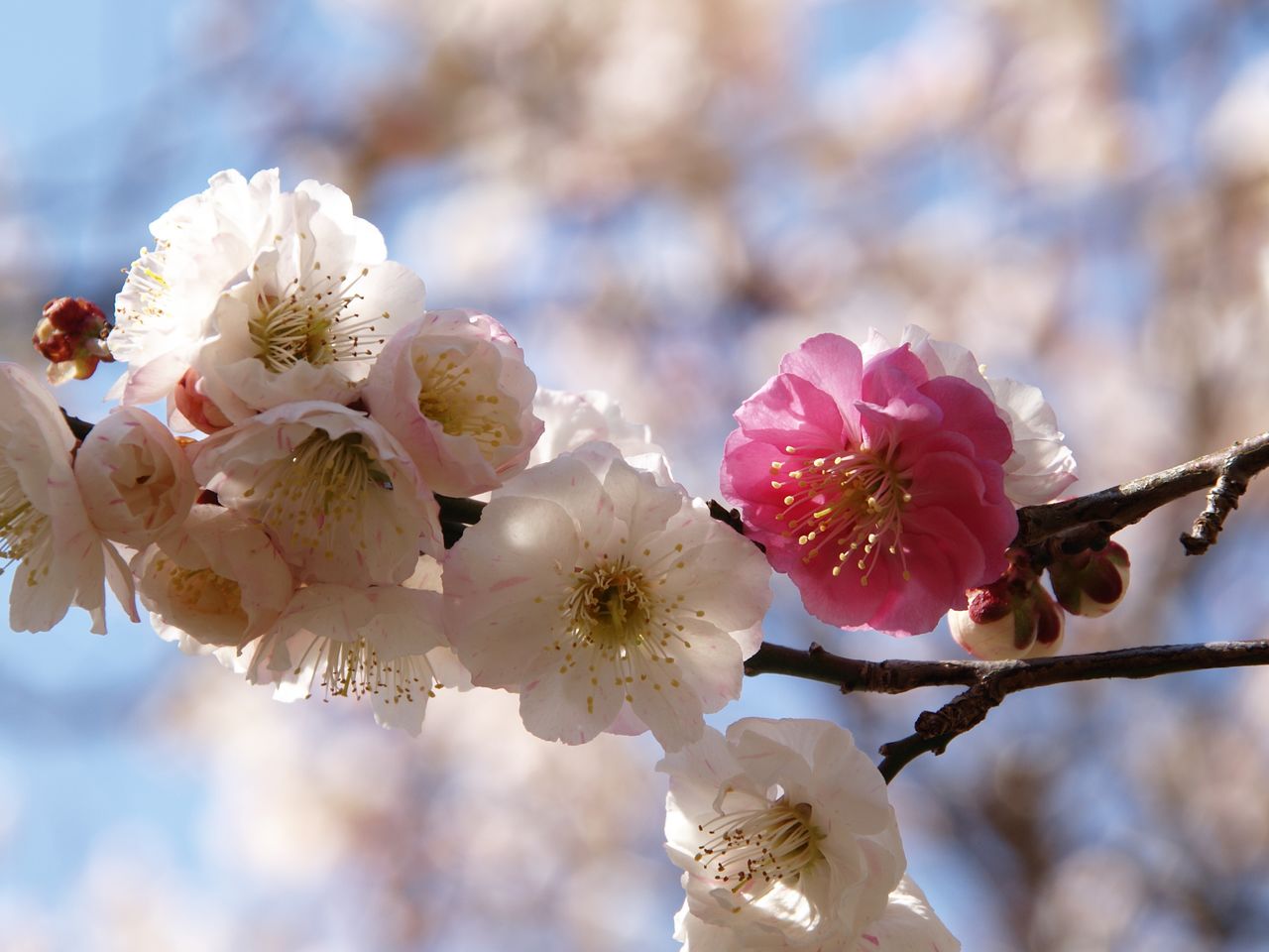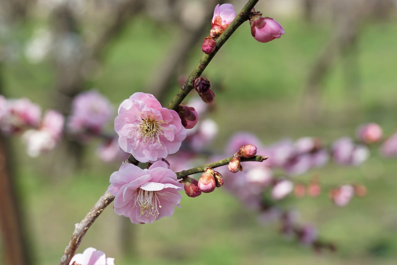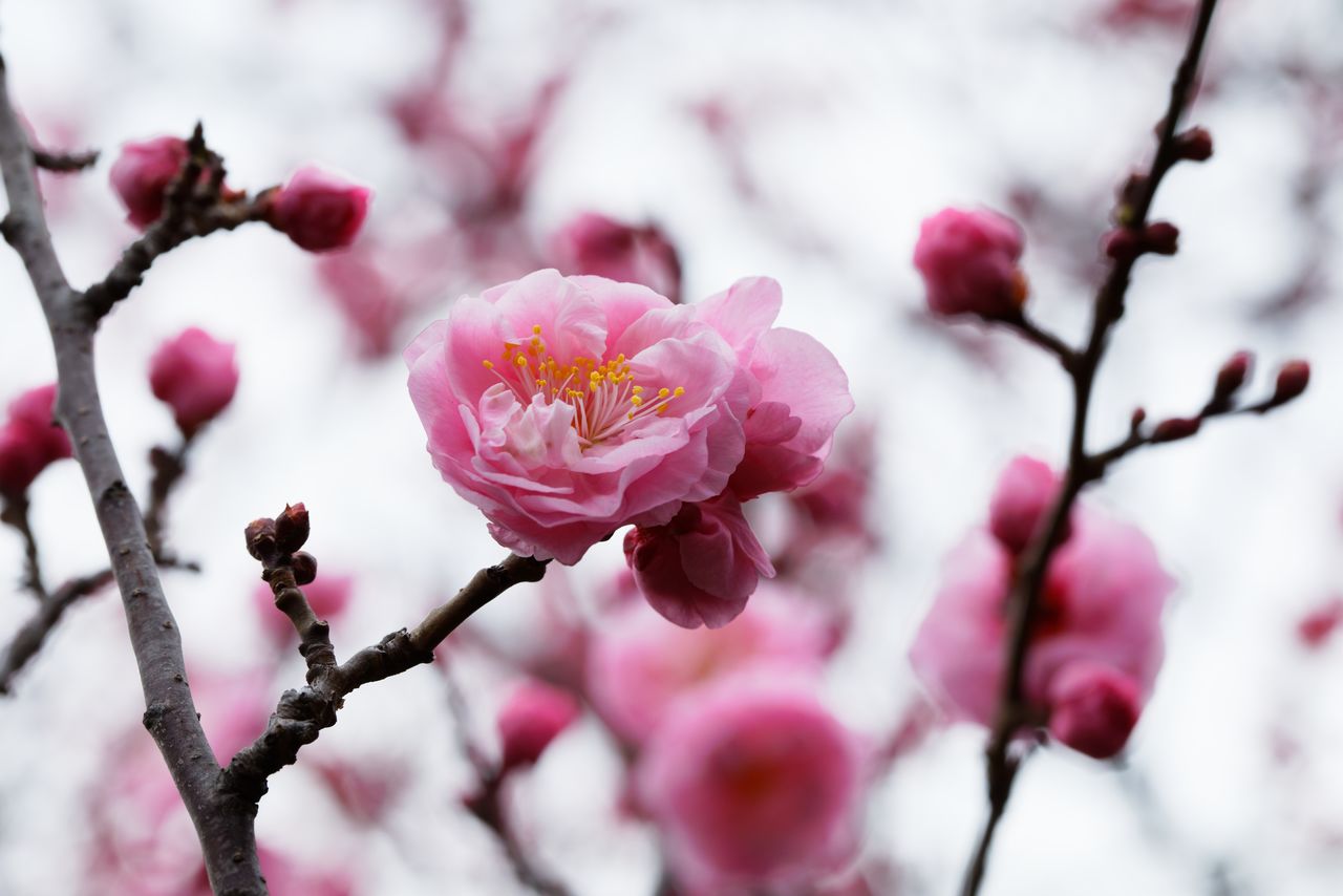 梅花据说有400多个品种,在日本被大致分为野梅、绯梅、丰后三个大系。它们经常作为景观树木而被种植在公园和庭院,大家可以在散步的时候顺便观赏一下充满个性的梅花。