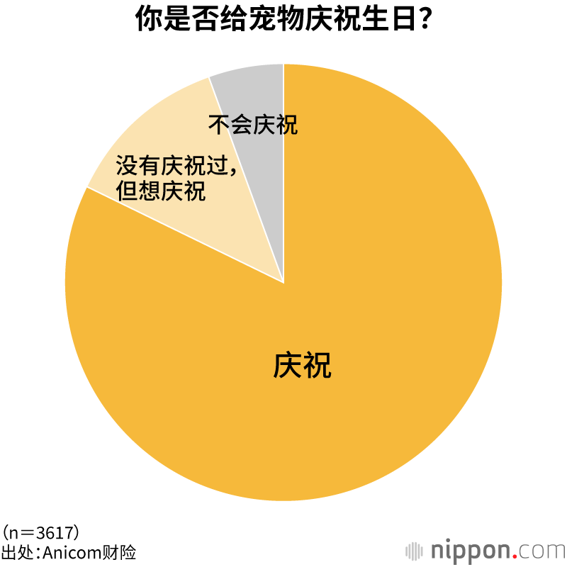 Anicom财险公司于2024年11月上旬面向公司签约客户实施了一项网络调查。结果显示,82%的受访家庭“会给宝贝宠物庆祝生日”。