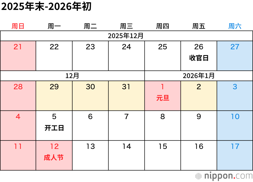 2025年年末,通常被视为全年“收官日”的12月28日是周日,这样,可能许多人都会选择在12月26日(周五)结束一年的工作。由于1月4日恰逢周日,所以2026年普遍将从1月5日(周一)开始上班。这次也和2024年末到2025年初的新年假期一样,连续两年都是连续休息9天的长假!然后,再坚持一周,又将迎来快乐星期一,成人节的三天短假!