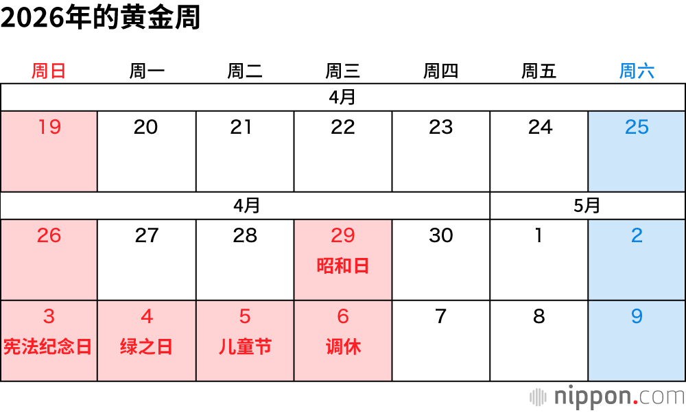 2026年4月底5月初的黄金周日期分布比较尴尬。但9月有一个五天的中长假!