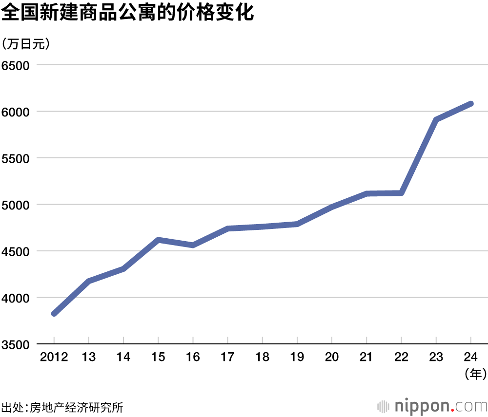 日本的房地产经济研究所的统计显示,2024年新建公寓全国平均发售价格同比上涨2.9%至6082万日元,连续8年创新高。主要是受到建筑材料价格和人工费上涨的影响。