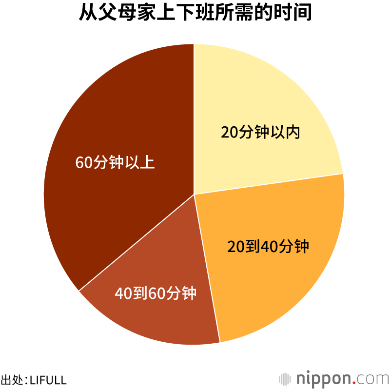 针对现在住在父母家的受访者,当询问他们上下班所花的时间时,36.0%回答在“60分钟以上”。虽然这个距离根本谈不上方便,但住在父母家的好处或许更胜一筹。