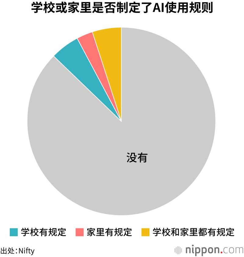 当被问及学校或家里是否对使用AI设置了规定时,87.5%的受访学生表示“没有”。尽管AI发展迅猛,但似乎学校或家长在制定规则上几乎没有跟进。