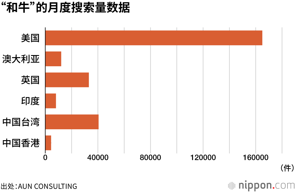 所有国家和地区对“和牛”都很关注,而把“和牛”这一项的搜索量单独制作图表可以看出,美国人对和牛的关注程更是格外突出。