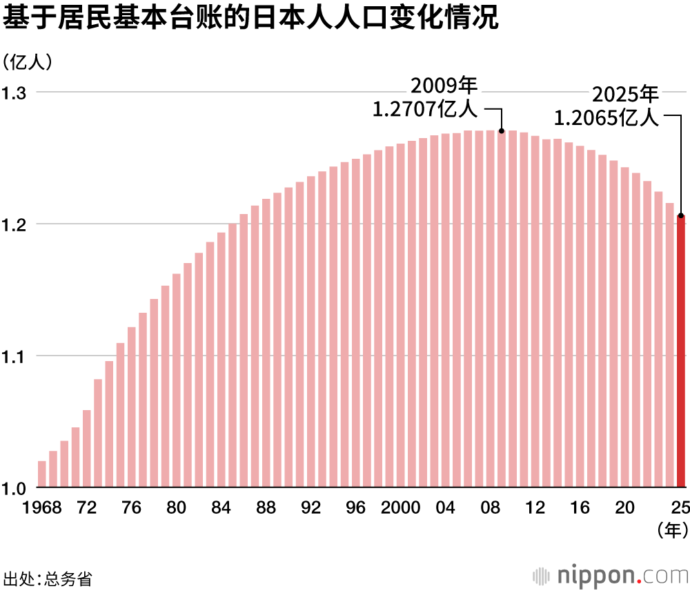 老龄化问题造成的死亡人口多于出生人口,再加上少子化问题,人口减少的速度越来越快,日本正在日益萎缩。