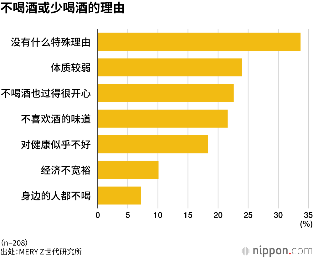 另一方面,“每周4到6次”(10.3%)和“几乎每天”(7.7%)的“饮酒是常态派”的合计比例不到两成。