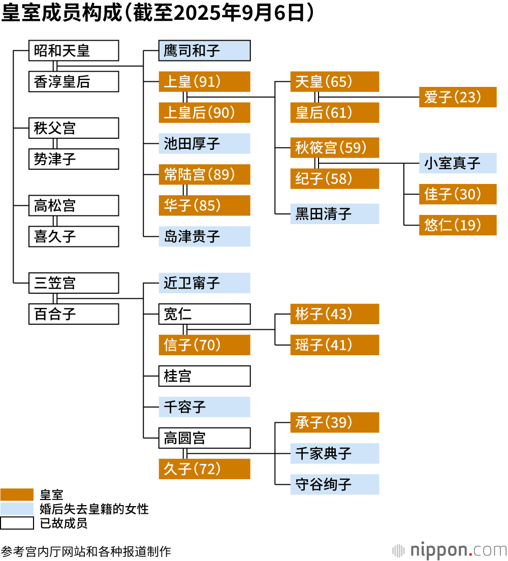 日本皇室由天皇、皇后,以及皇族成员共计16人构成。