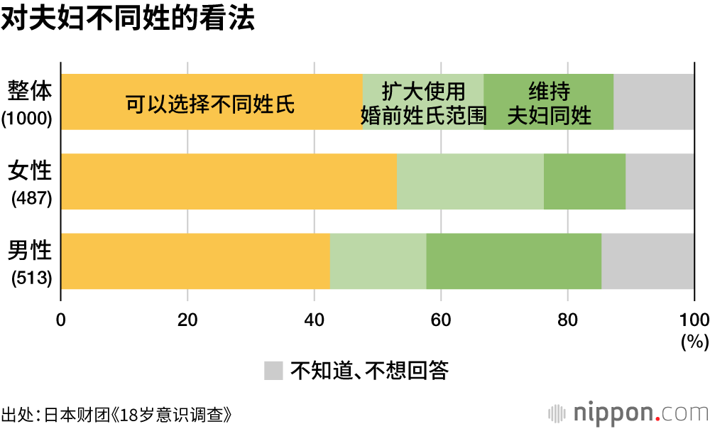 日本财团为了解年轻人的想法而持续实施《18岁意识调查》,2025年8月中旬针对全国1000名17至19岁年轻人,询问了他们对“夫妇不同姓制度”的看法。