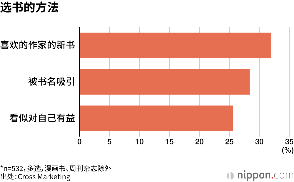 针对半年读书超过一本的受访者,当询问他们选书的方法(多选)时,回答最多的是“喜欢的作家的新书”,占比为32.0%;其次是“被书名吸引”(28.4%)、“看似对自己有益”(25.6%)。
