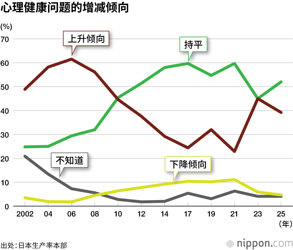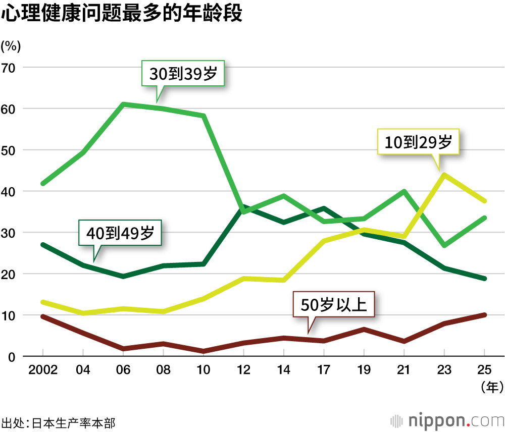 2025年实施的上市企业人事负责人问卷调查显示,十几岁和二十多岁的员工最容易面临心理健康问题。