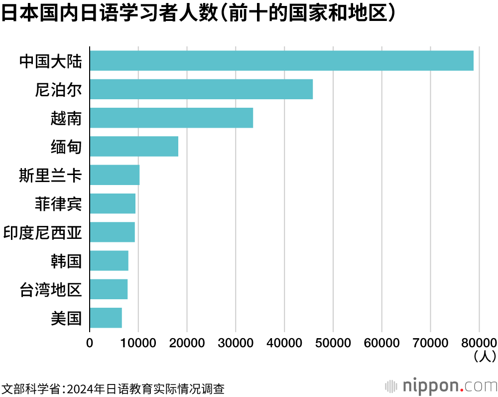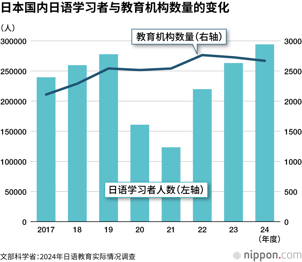 文部科学省的调查显示,截至2024年11月,日本国内的日语学习者人数为294198人,同比增加3万人以上,创下历史新高。