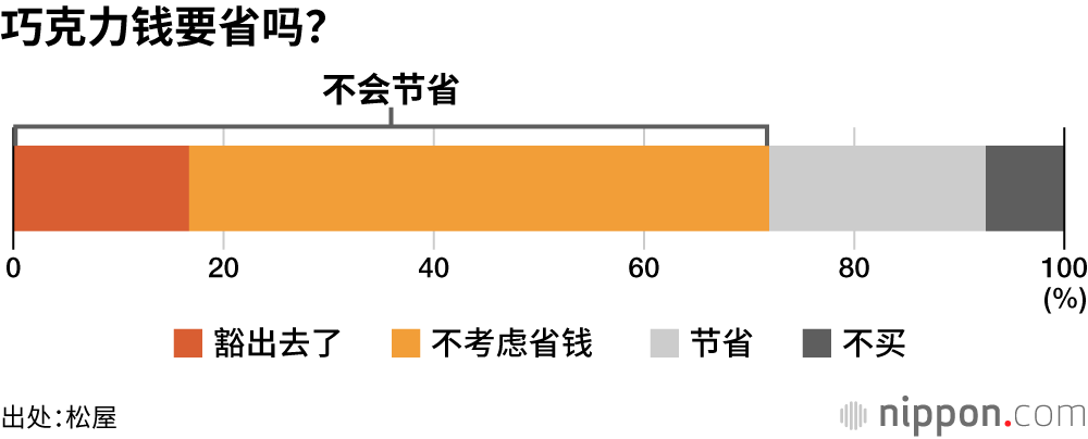 对于去年的情人节巧克力,约65%的受访者表示“感受到了涨价”。今年,由于巧克力原料可可的价格飙升,巧克力价格继续呈上涨趋势。尽管如此,选择“一掷千金”的受访者占16.7%,“不考虑省钱”者占55.2%,可见超七成受访者无意节约。这可以说反映出人们的一种心理:尽管觉得价格高,但既然是一年一次的节日,还是想买自己喜欢的东西!