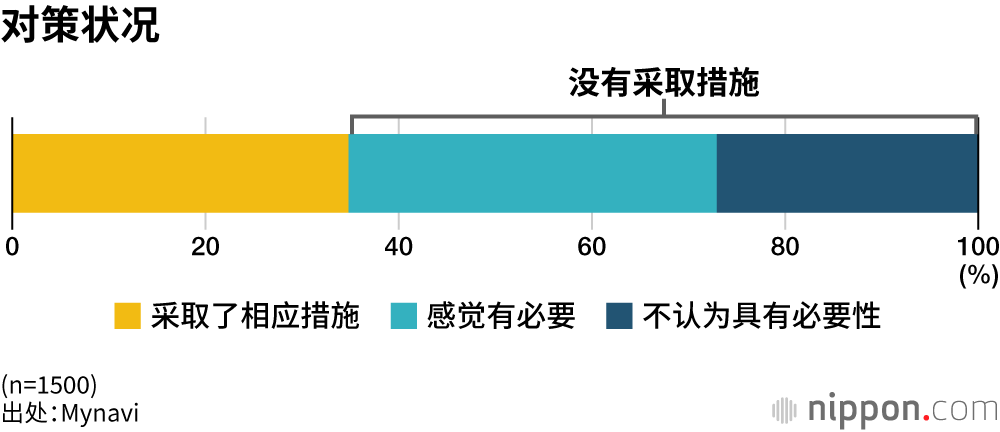 另一方面,34.8%的受访企业对此采取了相应的对策,而38.1%的企业“虽然感觉有必要,但未采取措施”,27.1%的企业则“不认为具有必要性”,可见没有采取预防措施的企业占了多数。