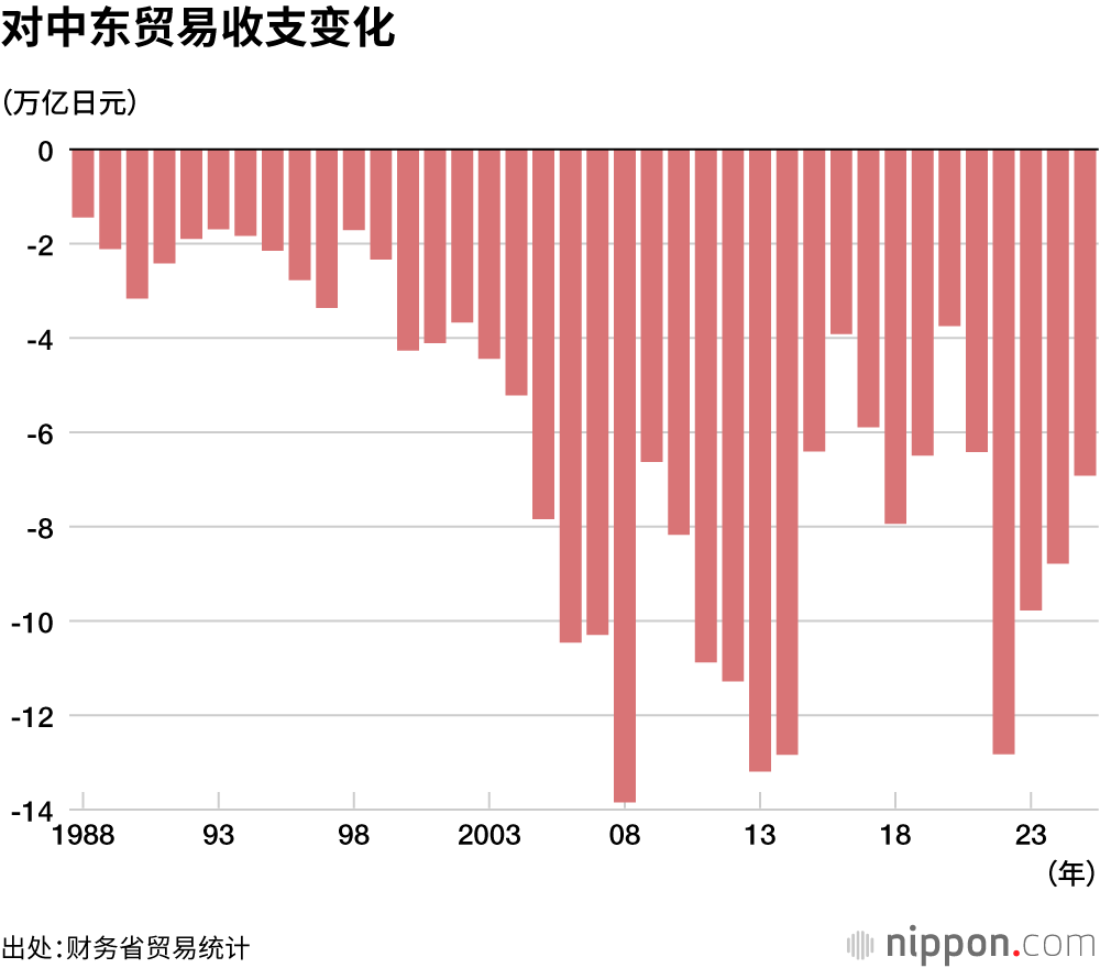 对中东地区贸易逆差受到能源价格下降影响,同比减少21.5%至6.8975万亿日元。