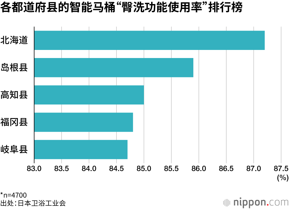 从都道府县来看,使用频率最高的是北海道(87.2%)、岛根县(85.9%)、高知县(85.0%)。