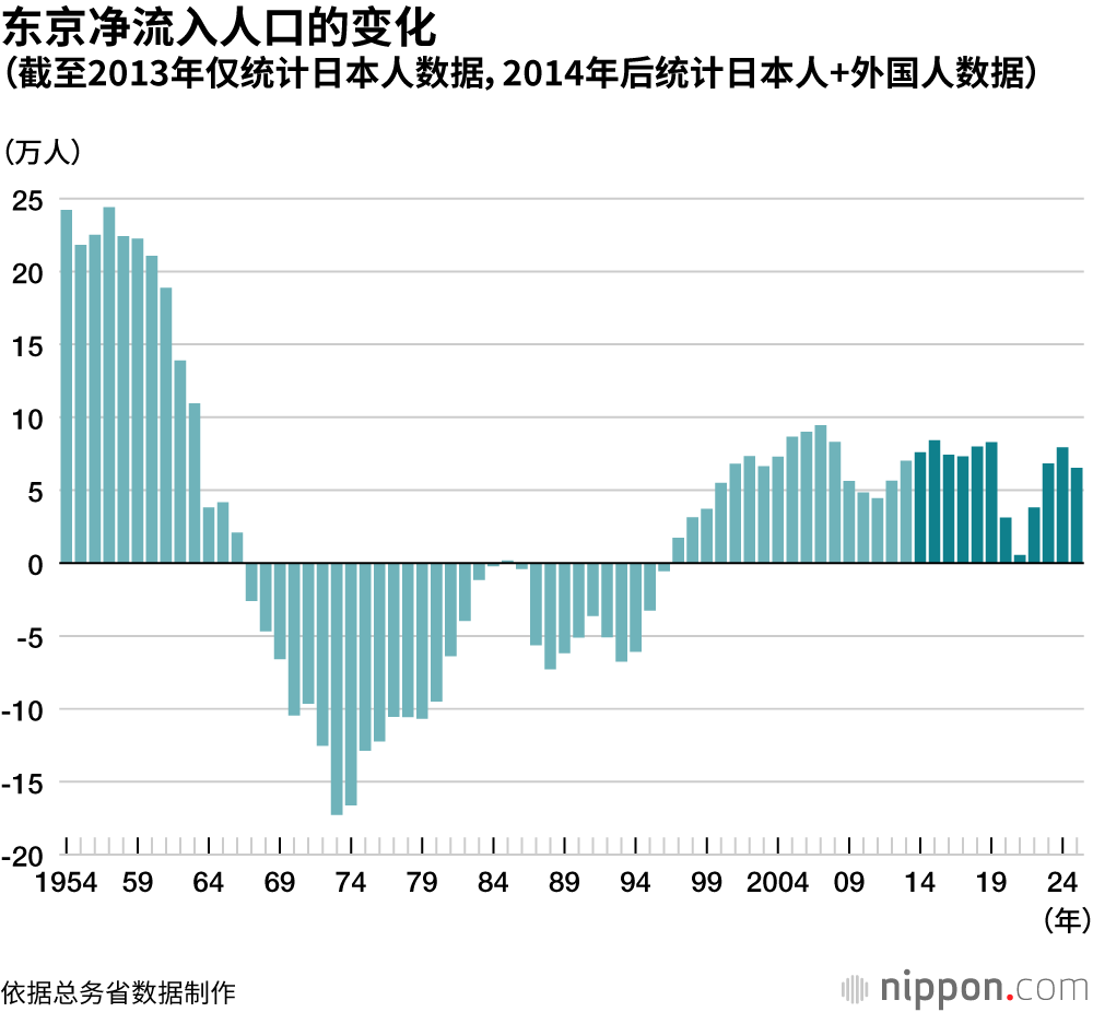 总务省公布的人口流动报告显示,基于2025年居民基本台账,“东京都流入人口”和“东京都流出人口”的差值为净流入65219人。净流入人口较2024年减少了14000多人,四年来首次出现减少。外国人由上一年的净流入8722人转为净流出378人。