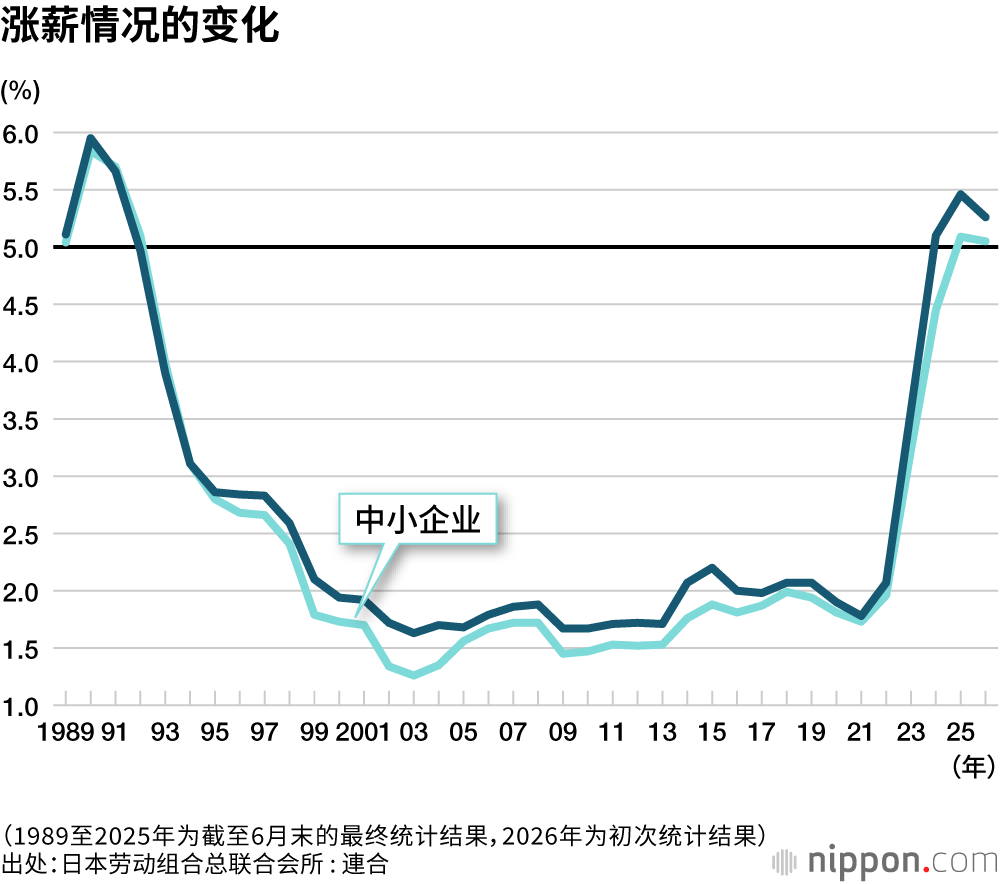 2026年春斗期间,大型企业纷纷给出“满额”涨薪答复。接下来会正式进入谈判阶段的中小企业能否维持这个势头?中东局势紧张导致经济景气下滑也成为一个不稳定因素。