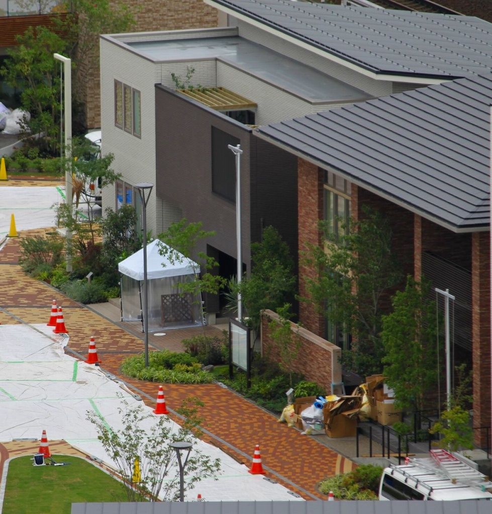 开张前半个月,大部分房子进入室内外设备安装阶段,房前屋后渐渐有了绿树花草。根据名古屋市的城市建设规定,该设施的绿色面积必须占建筑面积的15%。除了商家在住房周围栽种的植物之外,公共场所以及停车场都为增加绿色覆盖率而做了精心设计。