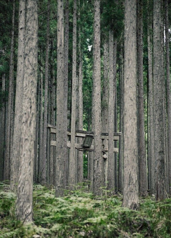 第一次发现这个神社是在油管(YouTube)的Anna Film Production这个频道。它隐藏在一大片笔直的杉林中,罕有人迹,从参道的方向往神社看去,就像通往另外一个世界的入口,所以这里也被称为京都的异世界入口。
