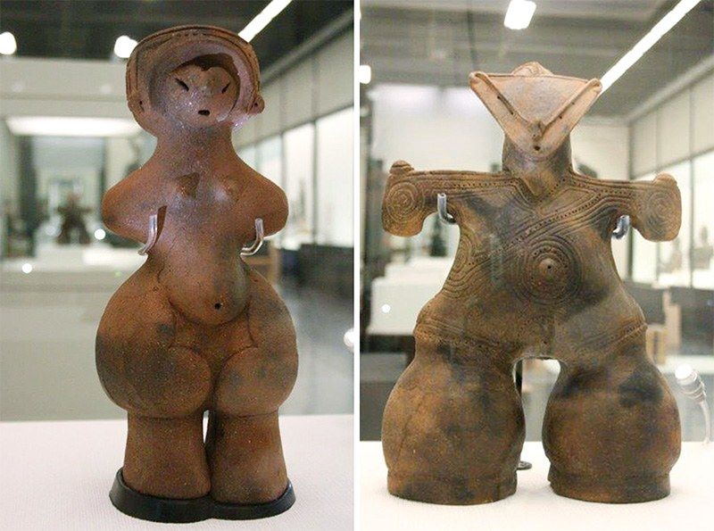 绳文土器:土偶“绳文维纳斯”(左)与“假面女神”(右) 长野县出土。2018年在东京举办了一场“绳文”展,掀起绳文热潮(时事社)