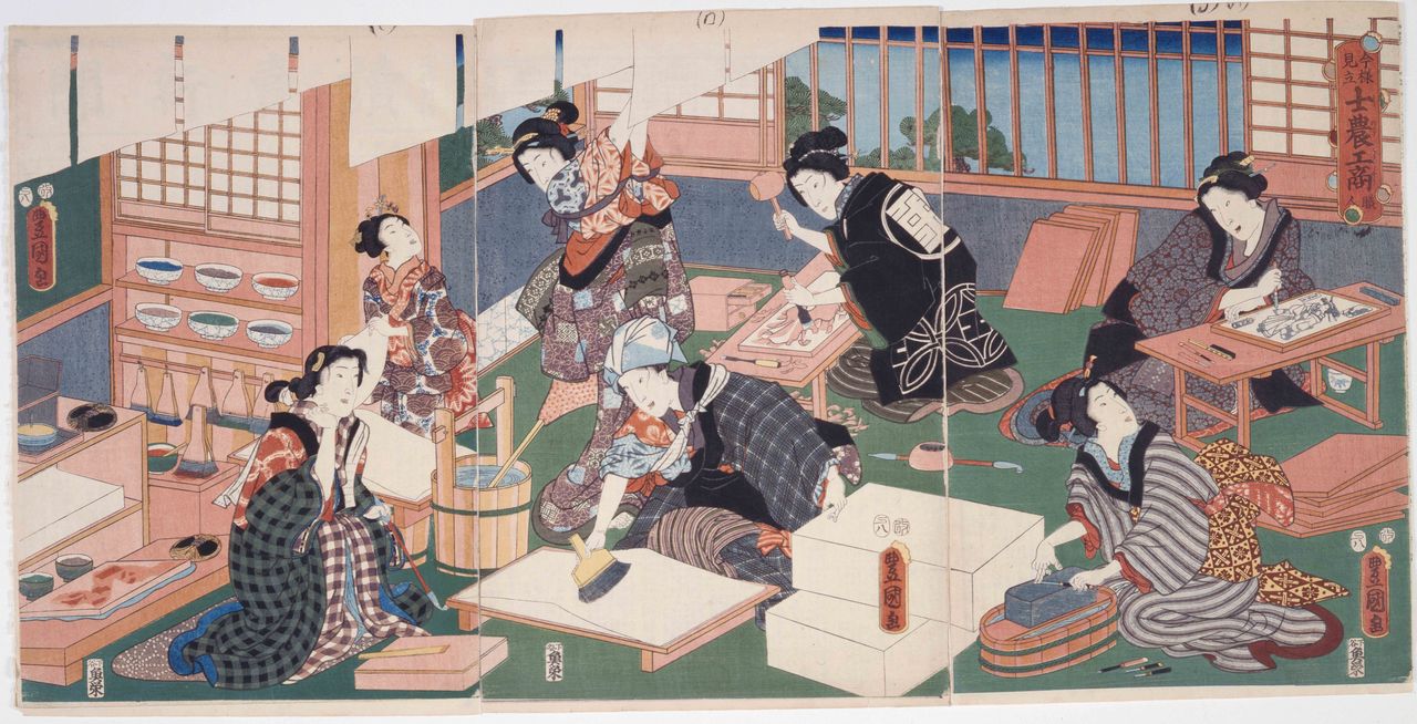 描绘了浮世绘制作场景的《今样见立士农工商之职人》(江户东京博物馆藏)