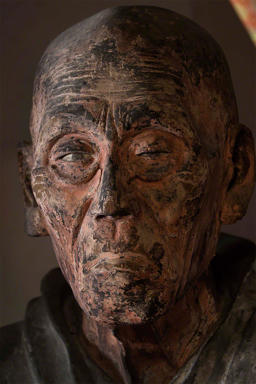 这类僧人形象的雕像称作“肖像雕刻”。如今也有很多人主张,“能完成如此写实主义的表达,应该是天才佛师运庆的作品吧”,不过,我想支持另一种观点——能将重源的细微表情雕刻得如此栩栩如生,应该是与他交情甚笃的快庆的作品。