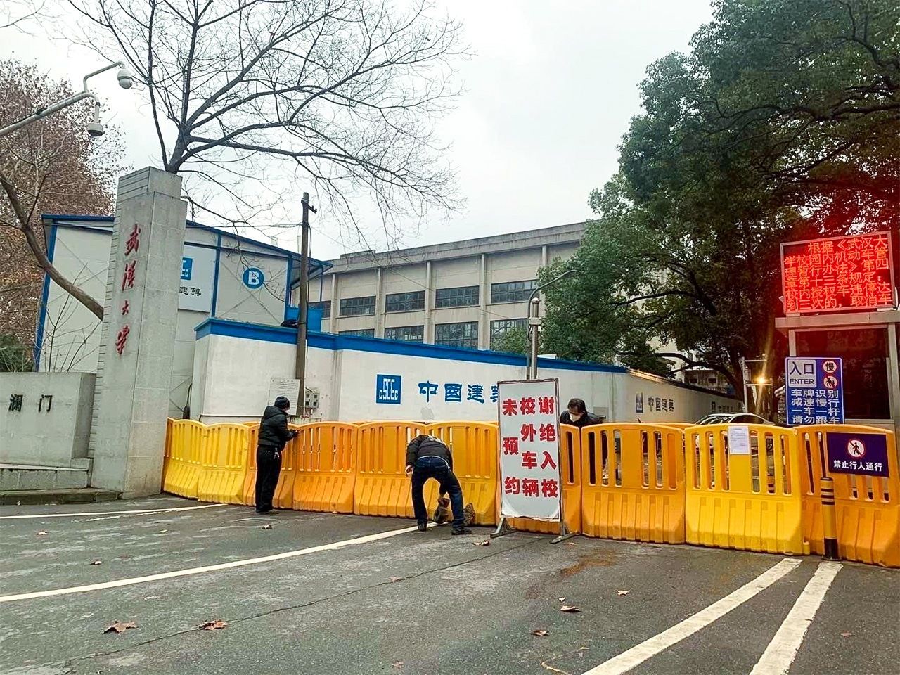 30日夜9时许,日本大使馆联系说可以搭乘第二趟撤侨包机。是夜凌晨一时,将在武汉大学正门集合,前往机场。匆匆收拾好,从宿舍赶去正门。事实上这是我第一次来到封锁后的正门前。封锁之前这里总是人潮喧嚷,如今大概也因为在深夜的缘故,一片静寂。塑料隔离墙隔断了宽阔的正门,这一幕映入眼中,我再次深切意识到武汉封城正在自己的生活中发生。这是不可见的病毒仿佛可视化一般的恐怖感。