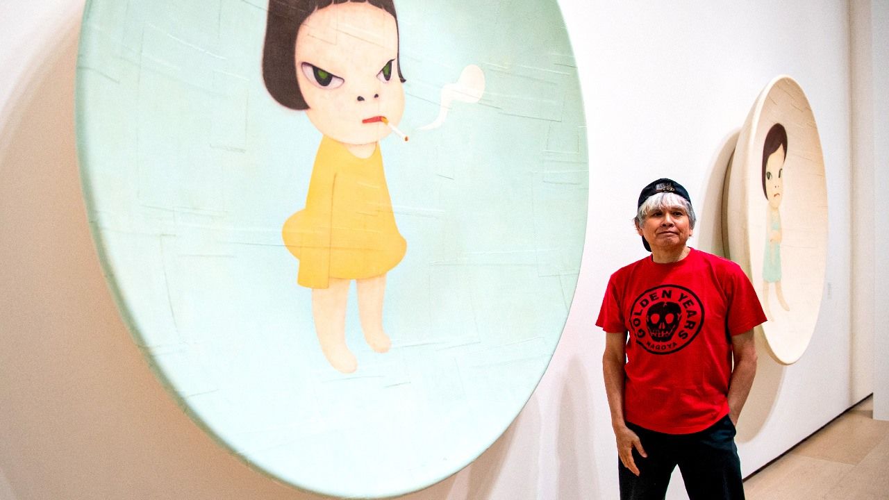 标题图片:奈良美智在西班牙毕尔包古根汉美术馆举行的个展开幕式上(2024年6月27日,AFP/时事社)