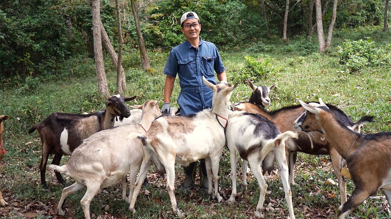 松原实践了日本独特的放牧式“山地奶酪畜牧”,饲养了20头牛和60头山羊,挤出奶后制作并销售奶酪等加工品。