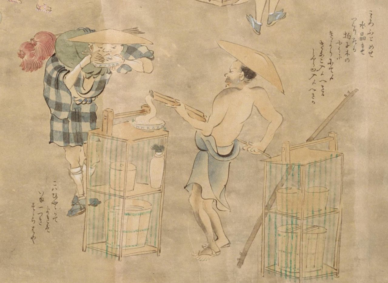 售卖枇杷叶汤的商贩,出自《近世流行商人狂哥绘图》(现于国立国会图书馆藏)