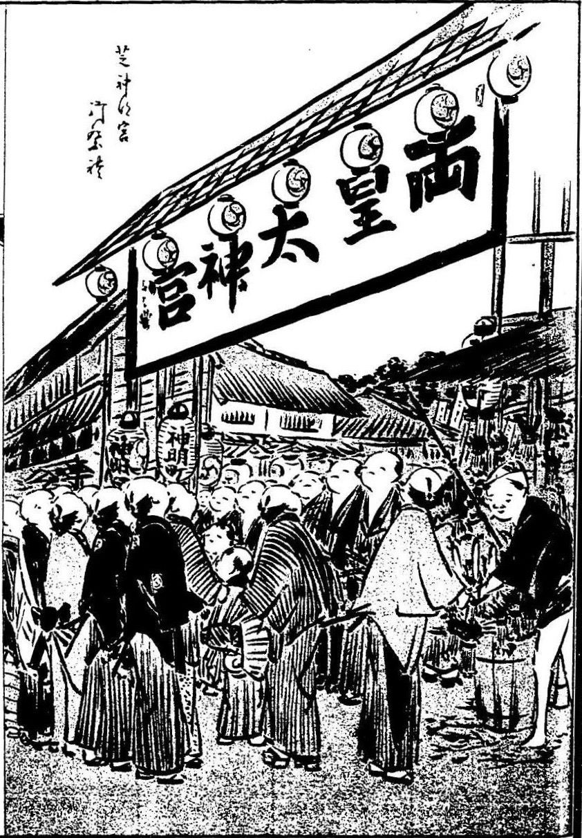 芝神明宫供奉的是伊势神宫内宫的天照大神与外宫的丰受大神,因此又被称为“关东的伊势神宫”(出自《绘本 江户府内风俗往来》,国立国会图书馆藏)