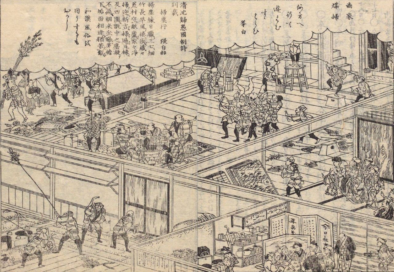 商店的所有学徒一同进行扫灰的情景(《东都岁事记》,日本国立公文书馆藏)