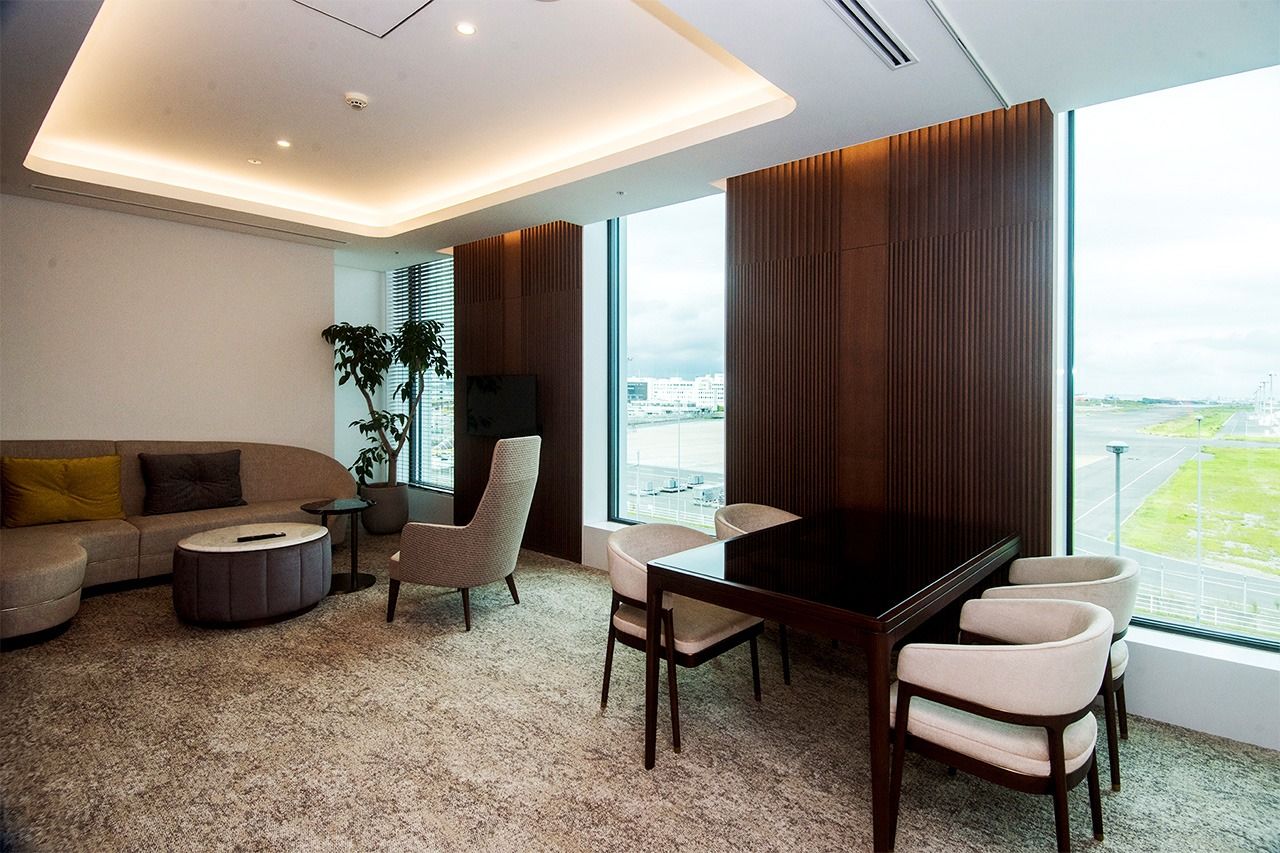 设计雅致的体检休息室。从部分房间人们可以望见远处停机坪上的飞机