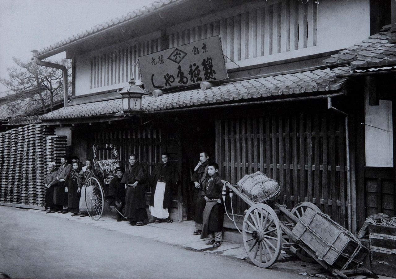 这大约是从明治到大正时代的菱六MOYASHI店的外观。悬挂的招牌上,从右到左写着“京都(菱六的商标)根源 种曲MOYASHI”,从中可以看出把酒曲文化作为和食根源的自豪感(图片:助野彰彦收藏)