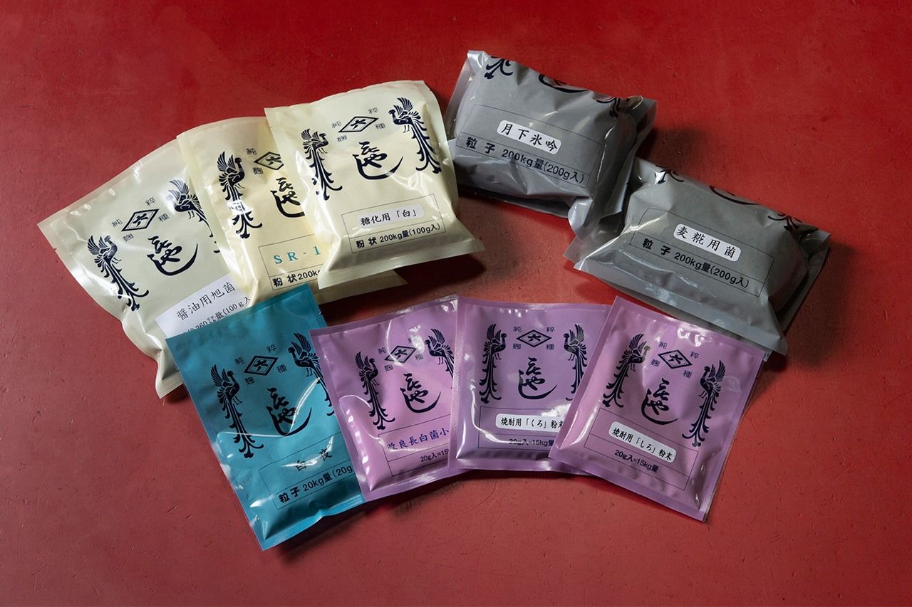 在菱六,制作好的种曲以2种形态来销售。一种是在大米等原料中生成的曲霉菌,呈原状态的“颗粒”状;另一种则为在筛过的曲霉菌孢子中加入作为增量剂的淀粉或米粉加工而成的、容易使用的“粉末”状。