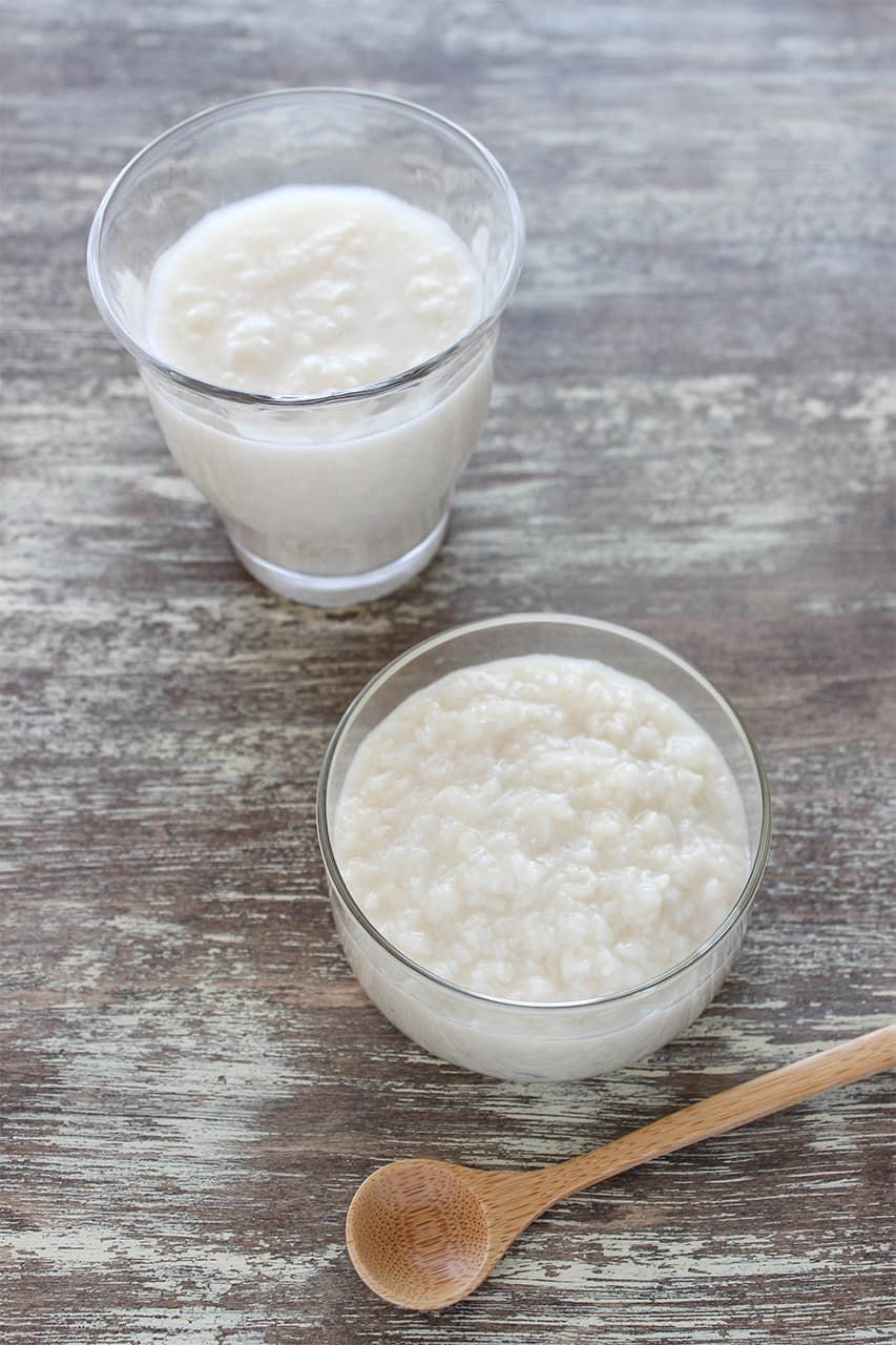 虽然也有用酒糟制成的甘酒,但是,用酒曲制成的甘酒不含酒精,所以即使是儿童或对酒精过敏的人也可以放心食用。甘酒有着浓郁的甜味,但制作过程中并没有添加糖,因此更加健康。