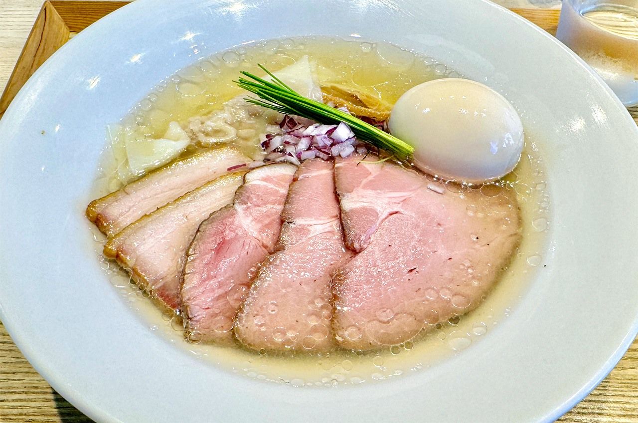 卖相精致的“宍道湖蚬贝中华荞麦〈盐〉”(盐味中式面)平均每碗使用约80粒蚬贝。喝上一口清澄的面汤,蚬贝的鲜美咸香瞬间弥漫口中。2023年,食客们盼望已久的该店第一家分店在池袋开业。