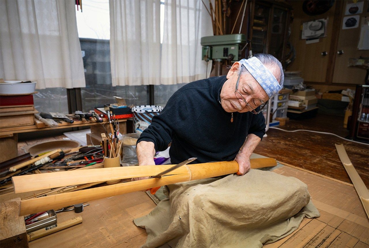 “因为我手巧,所以从小就制作竹马、钓竿之类的东西。”藤沼回忆道,“我父亲是木工,家里有劈刀、锯子等工具,可以随便使用,只是我从没想过当竹艺匠人。”