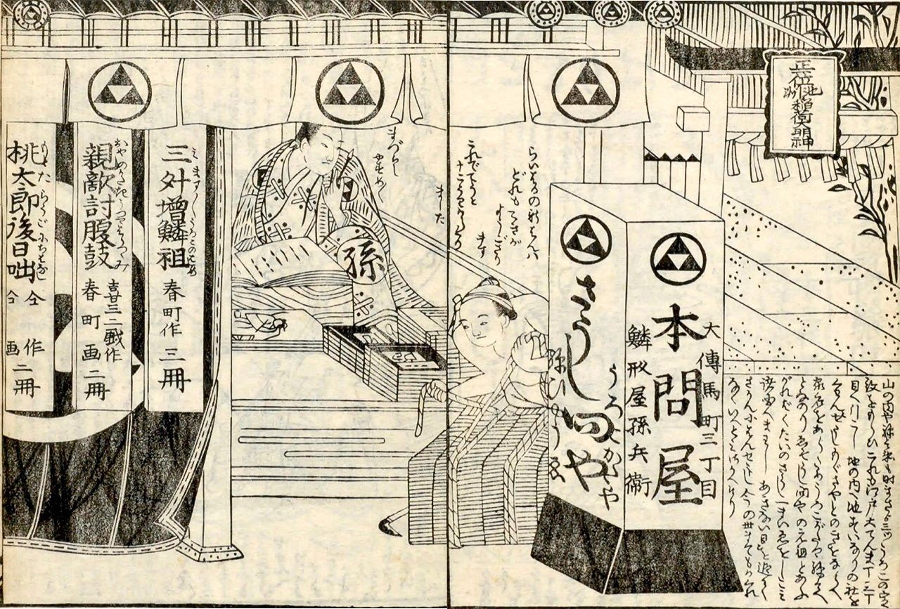 标题图片:《江户名所图会》中的地本问屋“鹤屋喜右卫门”(日本国立国会图书馆藏)