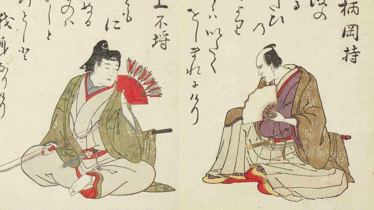 标题图片:耕书堂出版的《吾妻曲狂歌文库》为江户后期代表性狂歌作者的肖像集。右图为手柄冈持(朋诚堂喜三二),左图为酒上不埒(恋川春町)。1786年出版(东京都立中央图书馆特别文库室藏)