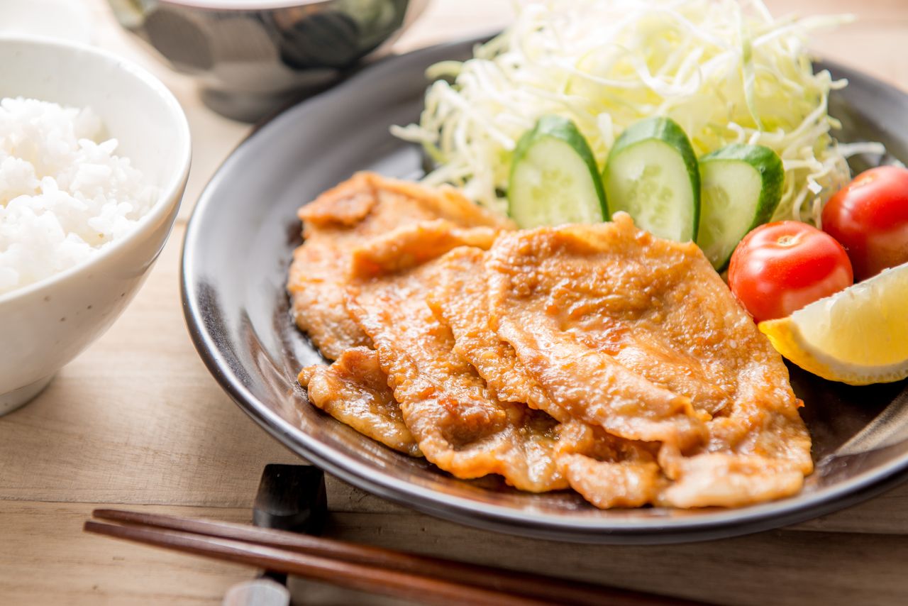 这是一道日本学校食堂和日式小餐馆的经典菜。先将猪肉切成厚片,放进加入大量生姜泥的酱油料汁中腌制,然后进行煎烤,一道鲜嫩又充满生姜香气的诱人美食便做好了。